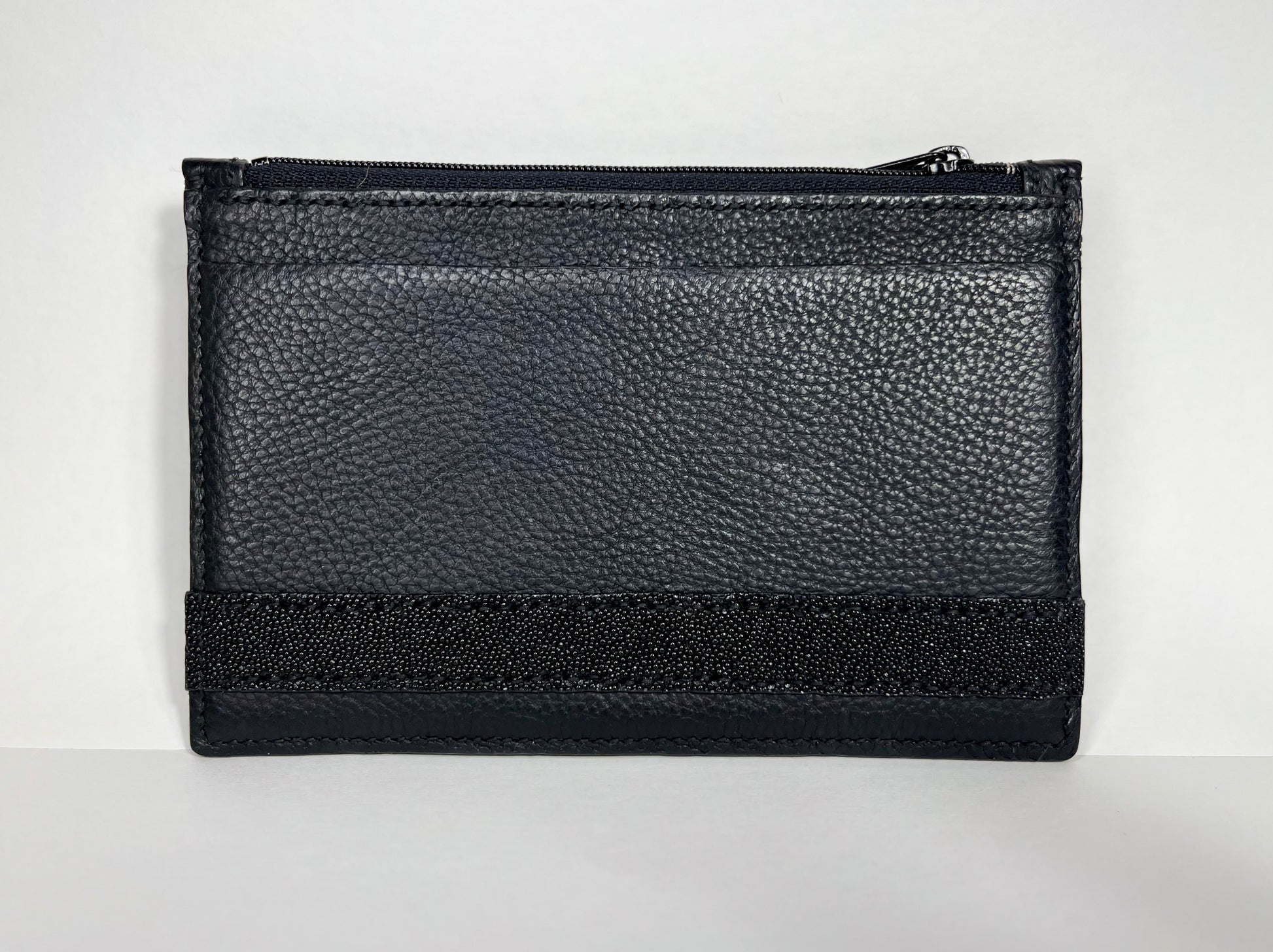 Black Tuscan consortium vacchetta leather trimmed with genuine black stingray bow and ribbon which adds a beautiful sparkle when the light hits it